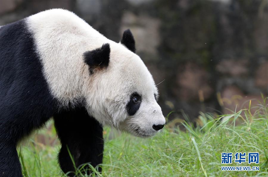 这是2015年9月21日在中国大熊猫保护研究中心都江堰基地拍摄的大熊猫“盼盼”。