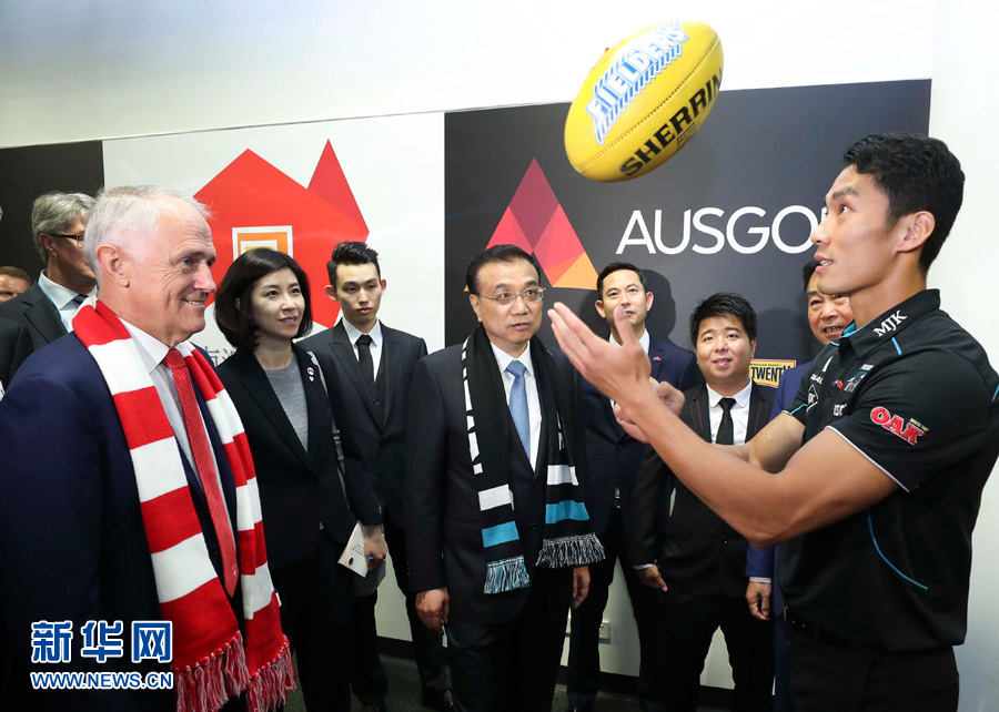 来源标题:李克强与澳大利亚总理特恩布尔共同观看澳式足球