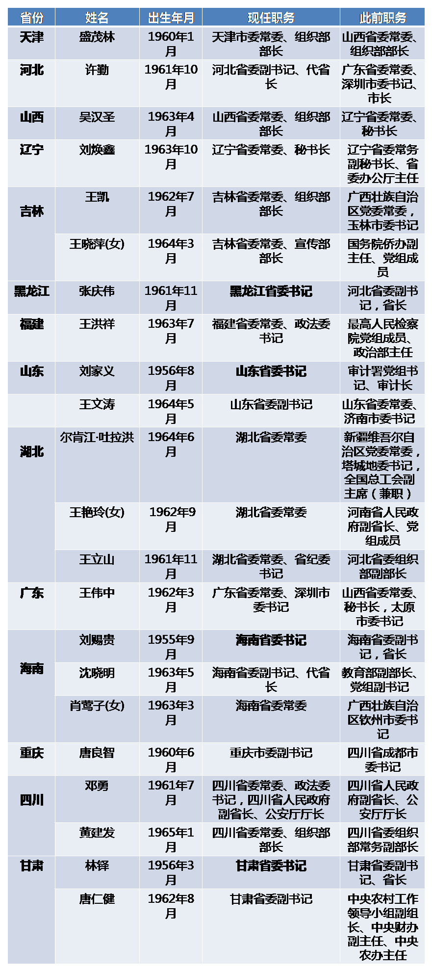 14省份22名省委常委履新 “60后”官员成主力 异地调任频繁