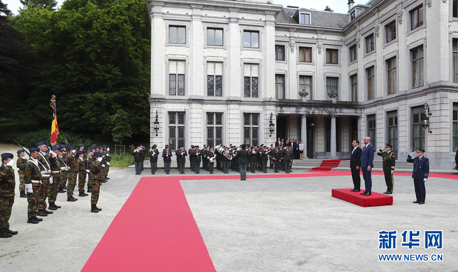 当地时间6月2日下午,国务院总理李克强在布鲁塞尔公爵夫人谷国宾馆同比利时首相米歇尔举行会谈。会谈前,米歇尔在公爵夫人谷国宾馆广场为李克强举行隆重的欢迎仪式。新华社记者 谢环驰 摄