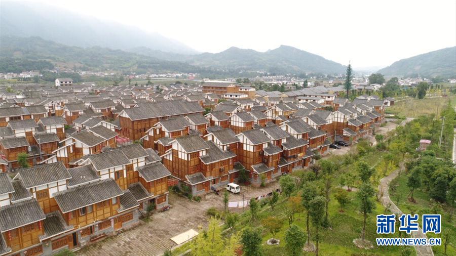俯瞰地震灾后重建的芦山县龙门乡青龙场村一角(9月20日摄)。