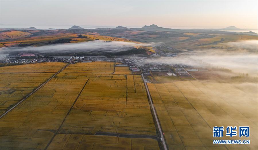 这是航拍的晨曦中的吉林省延边州和龙市东城镇光东村(9月22日摄)。