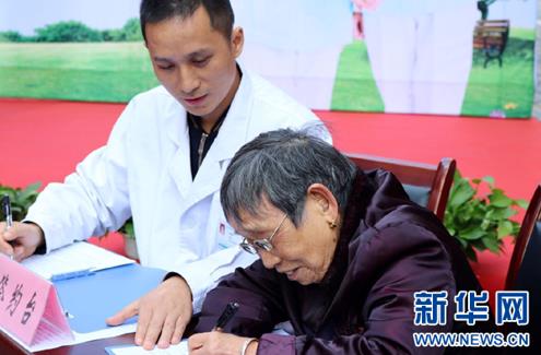 2016年11月11日,重庆沙坪坝区新桥社区卫生服务中心集中举办“家庭医生”服务签约仪式。图为居民代表签约家庭医生现场。