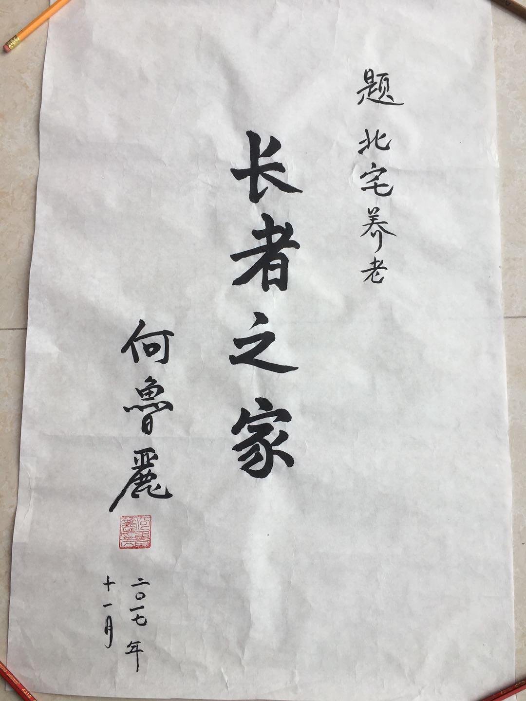 原全国人大常委会副委员长、民革中央主席何鲁丽为北宅养老题词