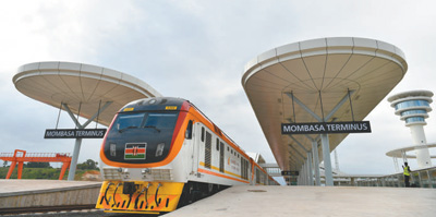 2017年6月1日,一列旅客列车停靠在肯尼亚蒙内铁路蒙巴萨西站,准备驶向首都内罗毕。这条铁路是肯尼亚独立以来的首条新铁路,由中国路桥承建,全线采用中国标准。