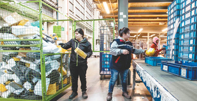2017年8月25日,在智利首都圣地亚哥的智利邮政物流中心,工作人员正在分拣来自中国的包裹。中国的跨境电商平台是智利人主要网购网站之一。