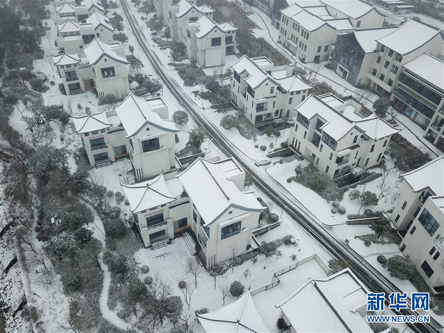 这是1月25日拍摄的雪后安吉天荒坪镇余村。