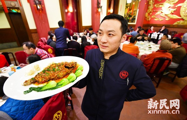 【春节餐厅最火爆】 我是杜明强,十多年前从河南信阳来到上海,我一步一个脚印地努力工作,如今当上了梅龙镇酒家总店的餐厅领班。你看,过年饭店生意特别忙,作为领班怎么好意思回老家呢?掐指一算,我已有十年春节没回老家了。老家有年逾古稀的老父母、独当一面的妻子和8岁女儿,他们都盼望我回家过年呀!但是,餐厅里更离不开我呀,我的心愿就是尽心尽职当个称职的领班,让顾客高兴而来,满意而归……这几天一下班,我就赶紧和父母亲、老婆女儿视频聊天,以了却心中的思念。 (种楠 摄)
