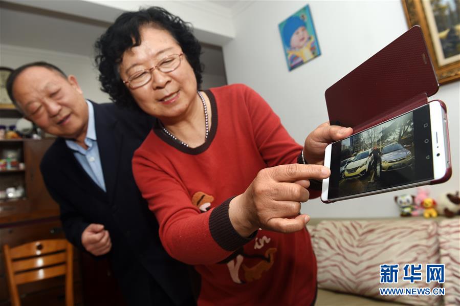 4月18日,王路珑(右)在介绍儿子刚换了辆新车。新华社记者 李紫恒 摄