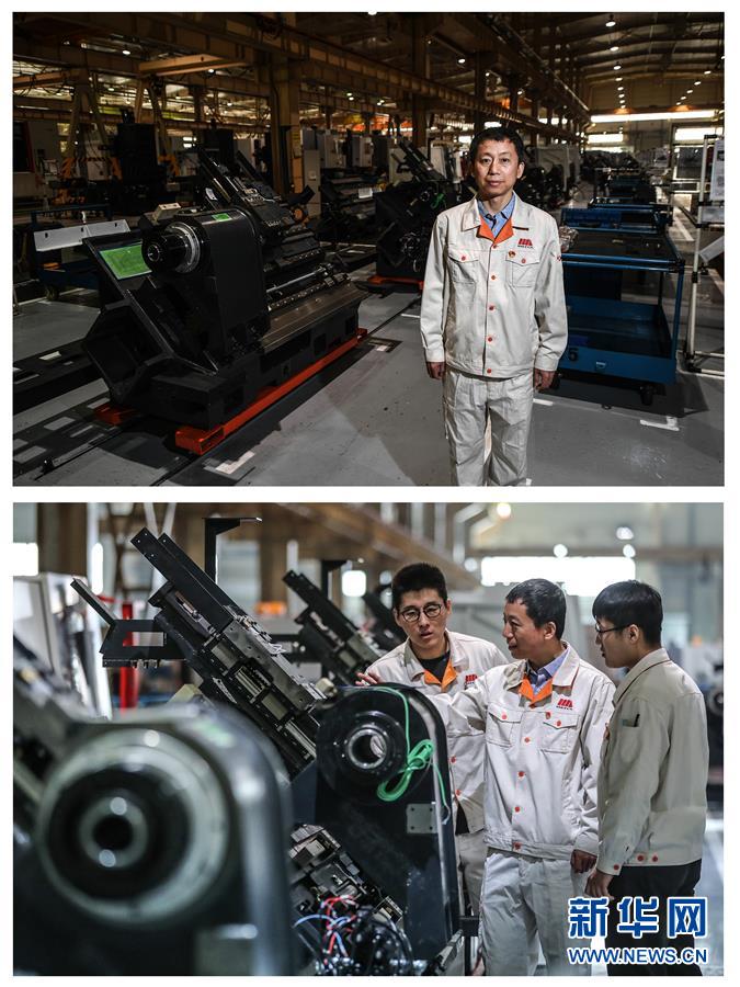 徐宝军(下图中),沈阳机床股份有限公司沈阳第一机床厂车工。他参加工作33年,从一名普通工人成长为机床调控专家。2014年,“徐宝军创新工作室”成立,先后完成创新攻关项目25项,为企业创造经济效益1亿多元(4月9日摄,拼版照片)。多年来,身为老工业基地的辽宁涌现出众多优秀工人代表。广大产业工人和技能人才始终坚守在生产一线,干一行、爱一行、钻一行、精一行,为辽宁振兴发展作出突出贡献。2017年,辽宁省委、省政府评选出首批95名“辽宁工匠”,表彰他们精益求精、持之以恒、爱岗敬业、勇于创新、带徒传承的工匠精神,营造尊重劳动、崇尚技能、鼓励创造的浓厚氛围,为老工业基地的全面振兴提供强大的人才储备和精神力量。新华社记者 杨青 摄