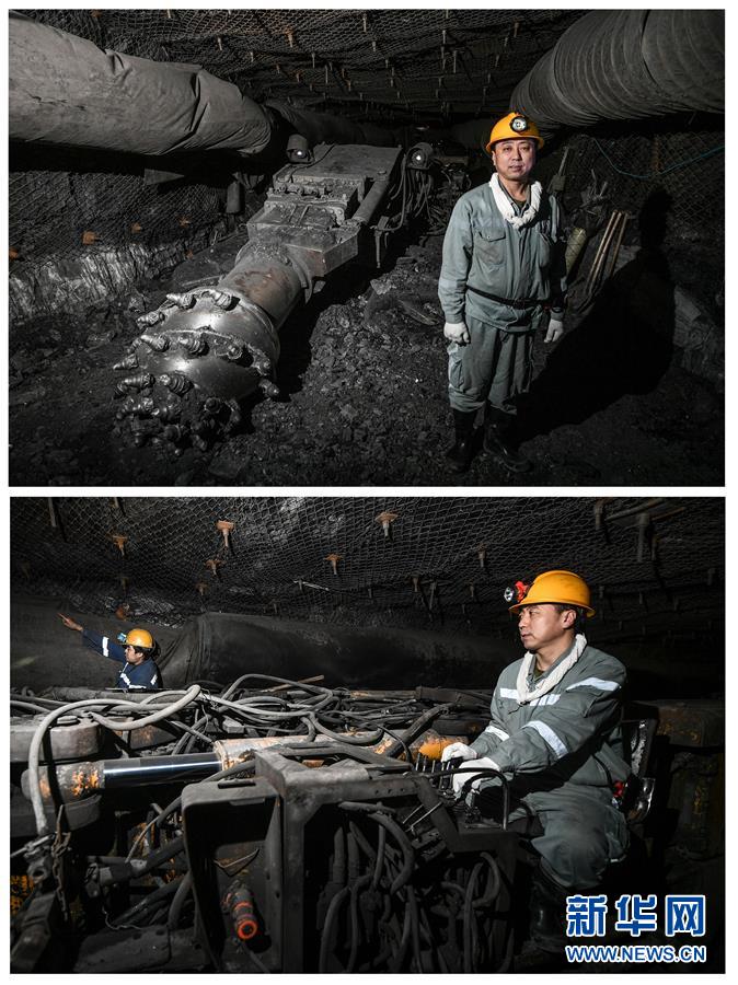 郝忠全(下图右),辽宁铁法能源有限责任公司综掘机司机。参加工作25年,他由一名普通工人成长为矿上的生产骨干,并晋升为高级技师。他利用业余时间查阅资料,对掘机设备进行技术改造,带领班组在矿井下创造出多项掘进记录(4月23日摄,拼版照片)。多年来,身为老工业基地的辽宁涌现出众多优秀工人代表。广大产业工人和技能人才始终坚守在生产一线,干一行、爱一行、钻一行、精一行,为辽宁振兴发展作出突出贡献。2017年,辽宁省委、省政府评选出首批95名“辽宁工匠”,表彰他们精益求精、持之以恒、爱岗敬业、勇于创新、带徒传承的工匠精神,营造尊重劳动、崇尚技能、鼓励创造的浓厚氛围,为老工业基地的全面振兴提供强大的人才储备和精神力量。新华社记者 杨青 摄