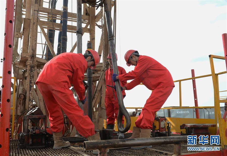 在青海油田狮子沟采油作业区,工人在忙碌工作(4月19日摄)。