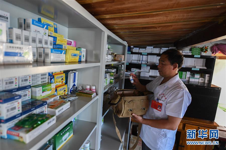 6月27日,李绍友在自家船上的卫生室准备出诊用的药品。新华社记者 季春鹏 摄