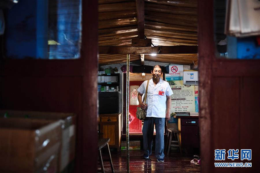 6月27日,李绍友准备离开建在自家船上的卫生室出诊看病。新华社记者 季春鹏 摄