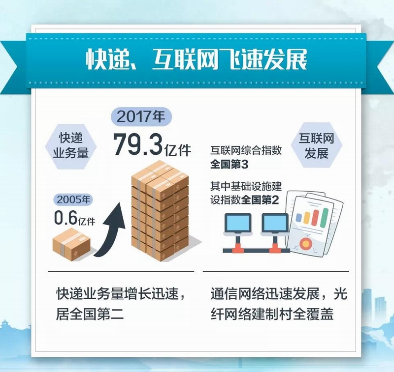 基础设施方面,浙江推进的速度很快。到2017年,浙江全省拥有民航机场7座;铁路营业里程2587公里。值得一提的是,2016年12月23日,投资400多亿元的杭绍台高铁开工,这是国内首条民资控股铁路。
