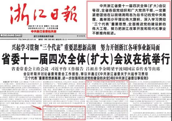 △2003年7月12日《浙江日报》的报道,红色框内即为“八八战略”具体内容