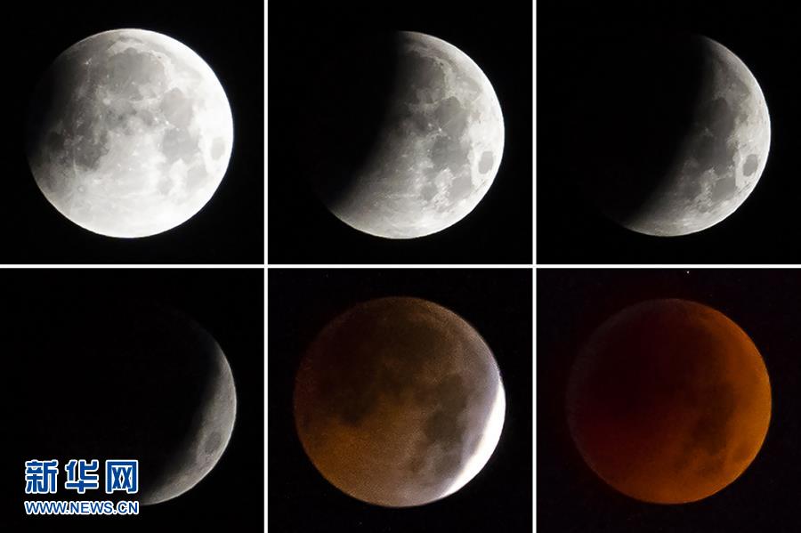 这是7月28日凌晨在四川甘孜县拍摄的月全食过程(拼版照片)。当日,天幕上演月全食美景。 新华社记者 沈伯韩 摄