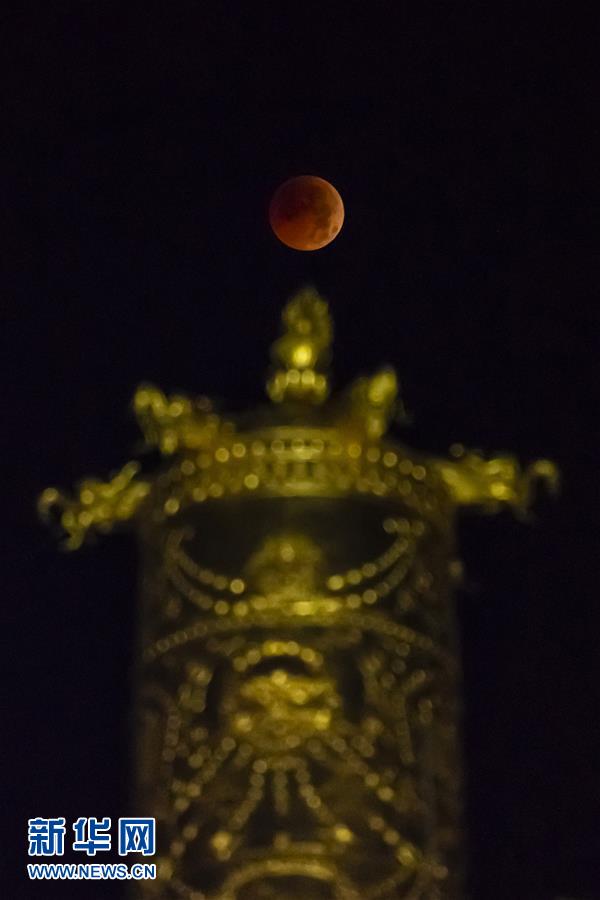 这是7月28日凌晨在四川甘孜县拍摄的月全食中的“红月亮”。当日,天幕上演月全食美景。 新华社记者 沈伯韩 摄