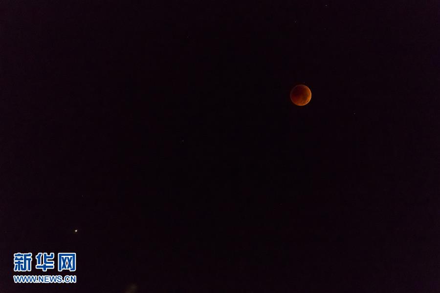 这是7月28日凌晨在四川甘孜县拍摄的月全食中的“红月亮”。当日,天幕上演月全食美景。 新华社记者 沈伯韩 摄