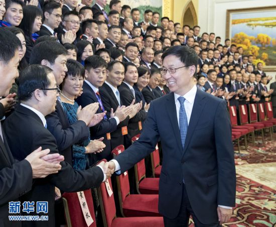 8月27日,中共中央政治局常委、国务院副总理韩正在北京人民大会堂会见香港特别行政区保安局局长李家超率领的香港纪律部队文化交流团全体成员。 新华社记者王晔摄