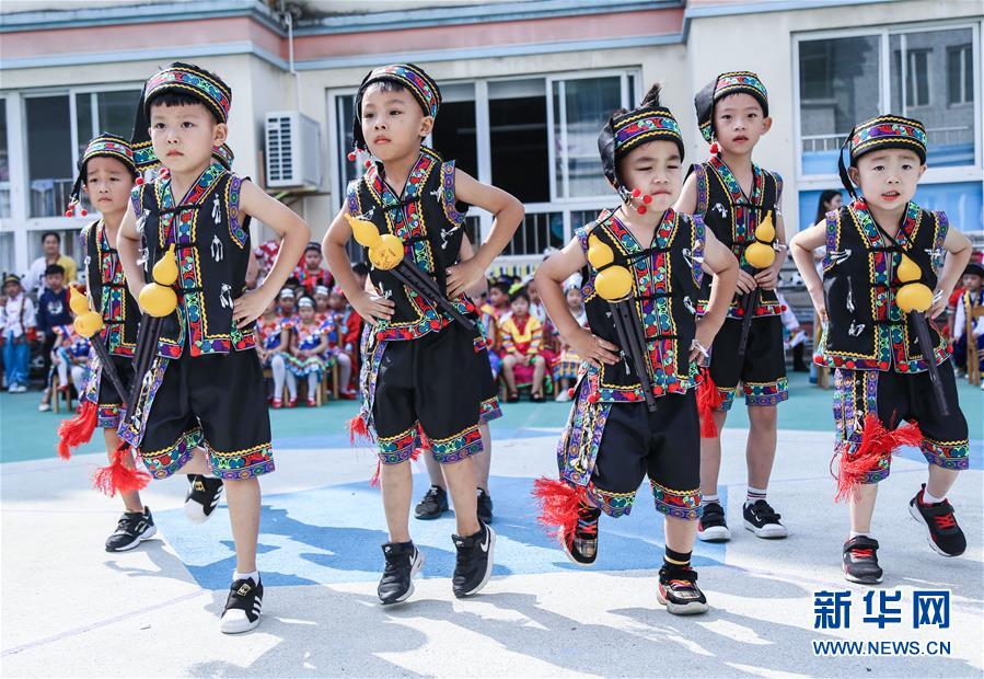 9月30日,孩子们身着少数民族服饰,参加迎国庆展演。 当日,浙江省长兴县中心幼儿园举行少数民族服饰展演活动。孩子们身着多个少数民族的服饰进行歌舞表演,迎接国庆节的到来。 新华社记者 徐昱 摄