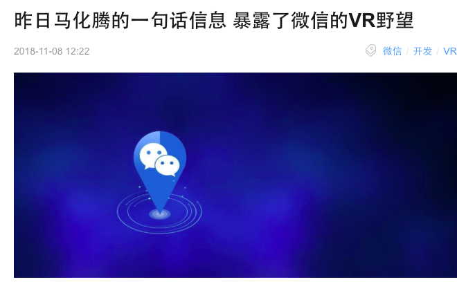 其次,在乌镇正在举行的第五届世界互联网大会上,马化腾释放出腾讯出“进军VR版微信”等消息。在5G时代,VR版微信将是个崭新和有趣的新玩法,其将让遥远的现实顷刻虚拟地呈现在大家面前。