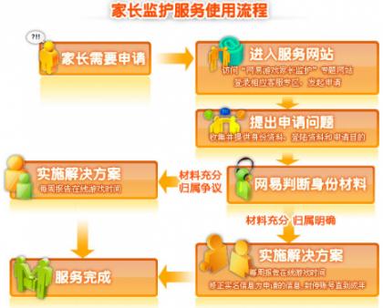 为了这一工程的执行到位,网易成立了专业的服务团队,开通了专门的受理渠道,为家长提供管理未成年人游戏行为的具体措施。家长只需要提供身份资料、登录资料和申请目的,就可以向网易申请监护工程的服务,经由验证确认,便可实现限制孩子每天或每周玩游戏的时间长度,限制玩游戏的时间段,统计游戏在线时间情况,或封停游戏账号直到小孩成年等功能。