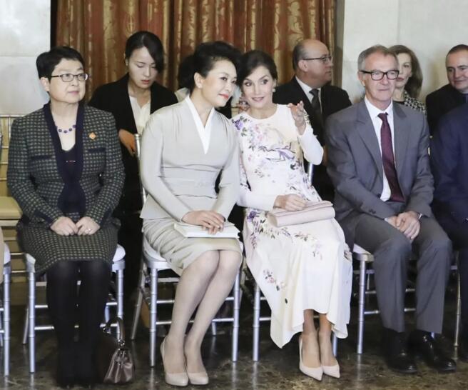 国家主席习近平夫人彭丽媛28日上午在西班牙王后莱蒂西娅陪同下,参观西班牙皇家剧院,欣赏著名歌剧《图兰朵》选段。皇家剧院始建于1818年,今年适逢剧院成立200周年,剧院正在复排普契尼著名歌剧《图兰朵》。韩籍男高音歌唱家金载亨、西班牙籍女高音歌唱家奥亚内演唱了《主人请听我说》、《今夜无人入睡》、《你那颗冰冷的心》等《图兰朵》中的著名咏叹调。彭丽媛对两位歌唱家的精彩演出不时鼓掌称赞。演出结束后,彭丽媛和莱蒂西娅王后同两位演员及钢琴伴奏亲切握手,并问了他们的从艺经历。