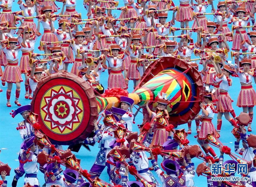 12月10日,广西壮族自治区成立60周年庆祝大会在广西体育中心隆重举行。这是庆祝大会上的群众文艺表演。 新华社记者 陈建力 摄