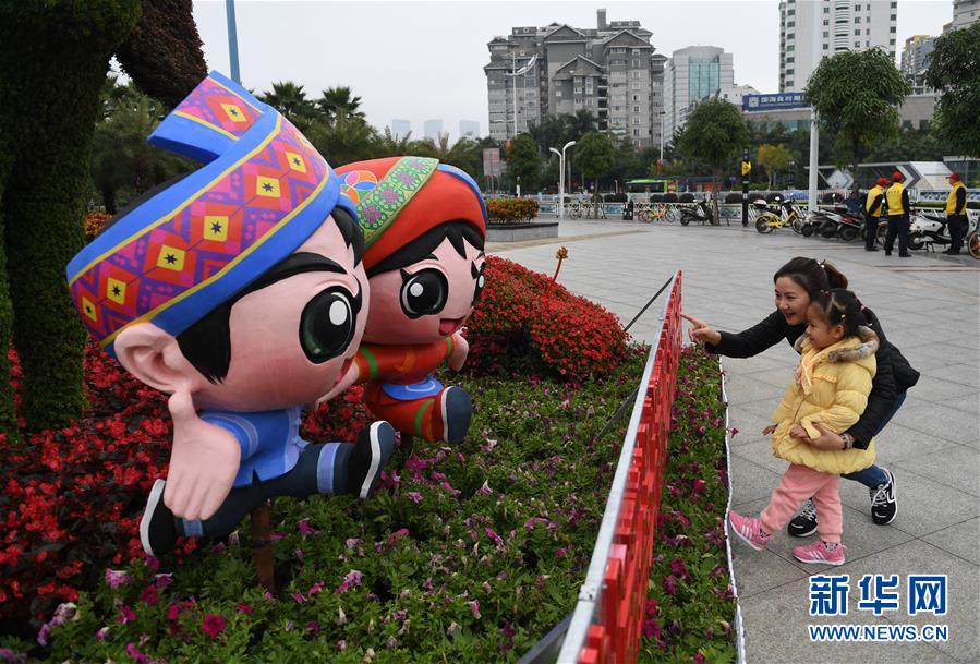12月10日,在广西南宁市南湖广场,市民在欣赏自治区成立60周年庆祝活动吉祥物“欢欢”和“喜喜”。 当日,广西壮族自治区成立60周年庆祝大会在南宁举行。 新华社记者 陆波岸 摄