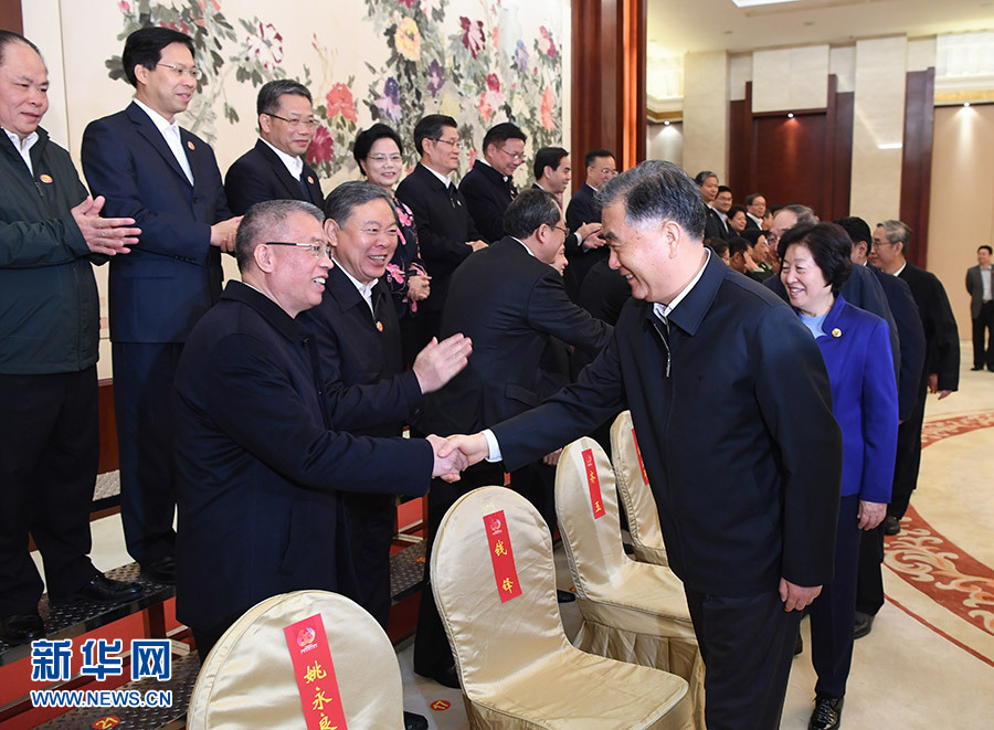 12月10日,中共中央政治局常委、全国政协主席、中央代表团团长汪洋在南宁会见广西壮族自治区现职副省军级以上负责同志。 新华社记者 申宏 摄