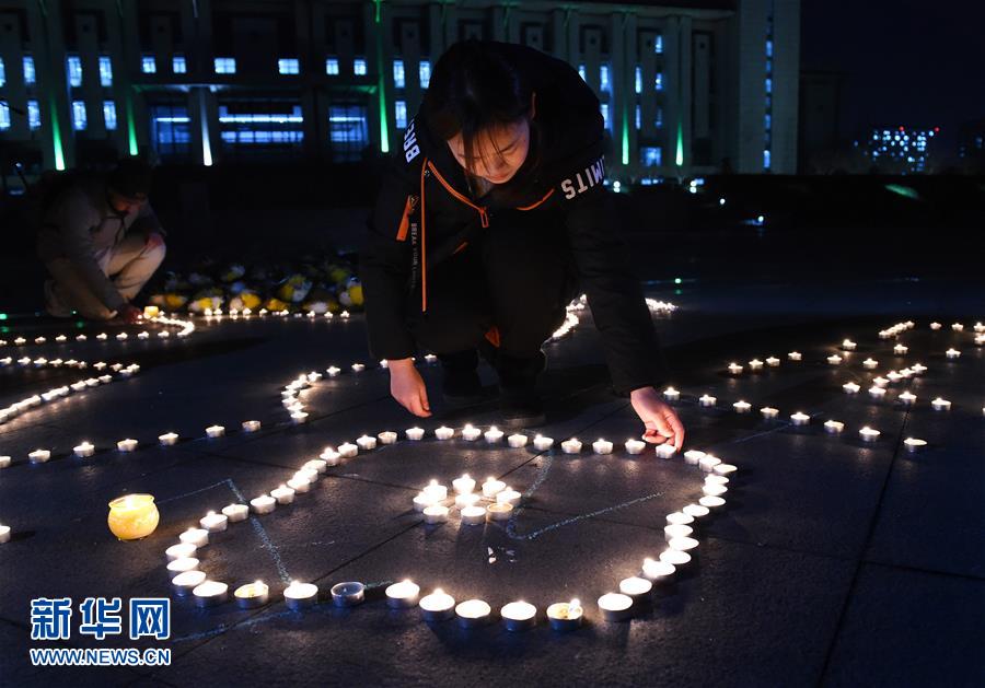 12月12日,学生将组成纪念图案的白烛摆放整齐。 当晚,南京东南大学学生在校园举行“烛光祭”活动,悼念南京大屠杀遇难同胞。学生们点燃白烛,献花默哀,表达哀思。 新华社记者 孙参 摄