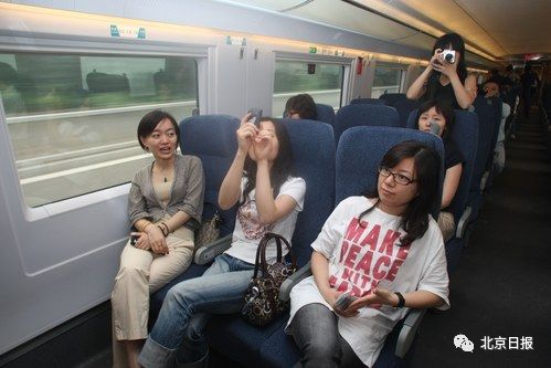 2008年6月26日,试乘京津城际铁路新式动车组的“乘客们”纷纷拍照留念。饶强 摄