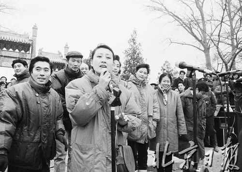 1991年,《渴望》剧组到昆明湖清淤工程慰问演出。胡敦志 摄