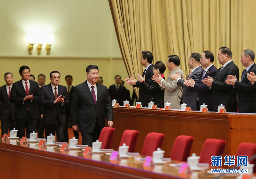12月18日,庆祝改革开放40周年大会在北京人民大会堂隆重举行。中共中央总书记、国家主席、中央军委主席习近平在大会上发表重要讲话。这是习近平、李克强、栗战书、汪洋、王沪宁、赵乐际、韩正、王岐山等领导同志步入会场。 新华社记者 谢环驰 摄