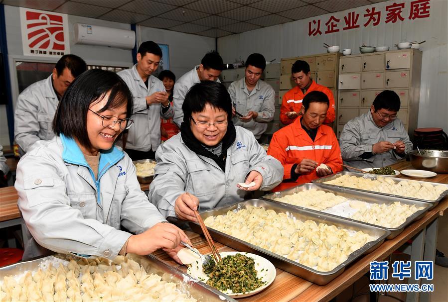 12月22日是中国二十四节气中的冬至,中铁七局西安地铁五号线的工作人员在工地项目部一起包饺子,迎冬至。 新华社记者刘潇摄