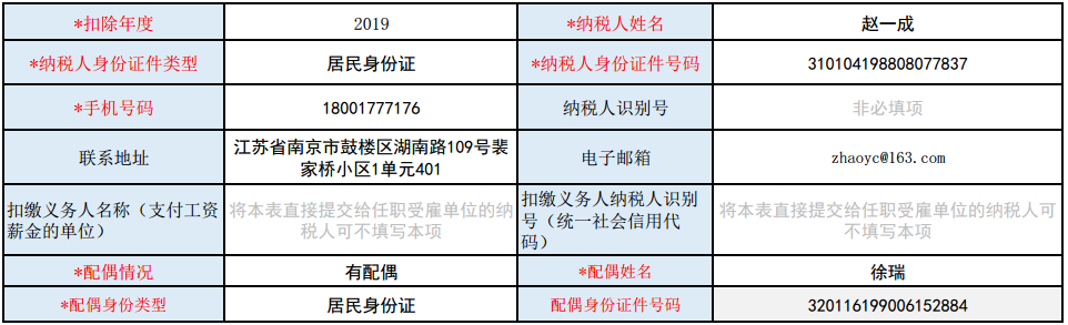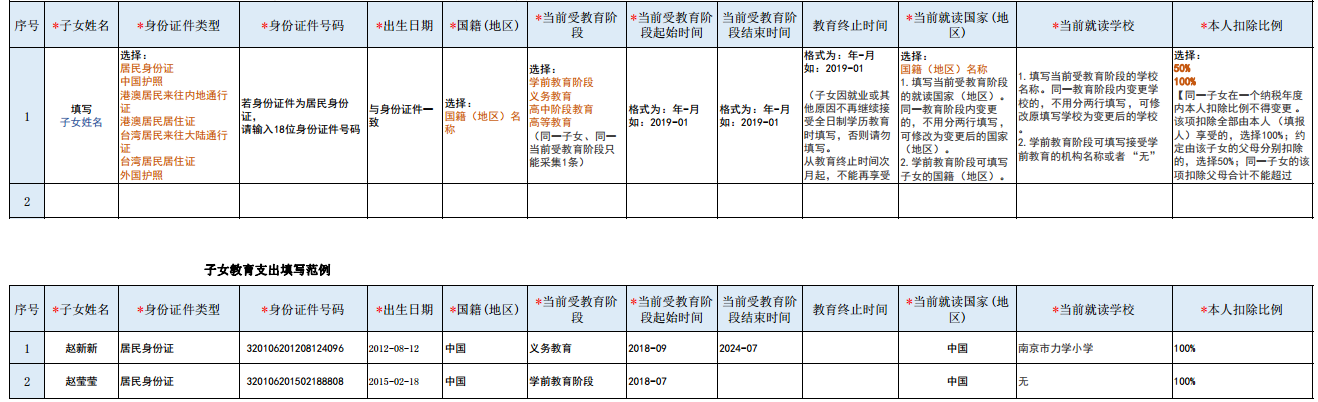 子女教育专项附加扣除填写范例
