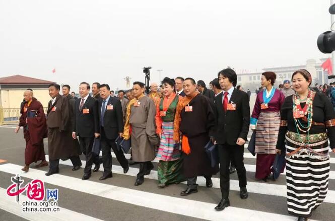 3月3日,全国政协十三届一次会议在北京开幕。2149名全国政协委员走进人民大会堂,少数民族委员在大会堂内外“闪”出一道靓丽的风景。