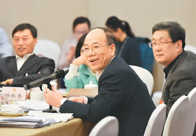 辽宁代表团王尚典代表在小组讨论会上发言。