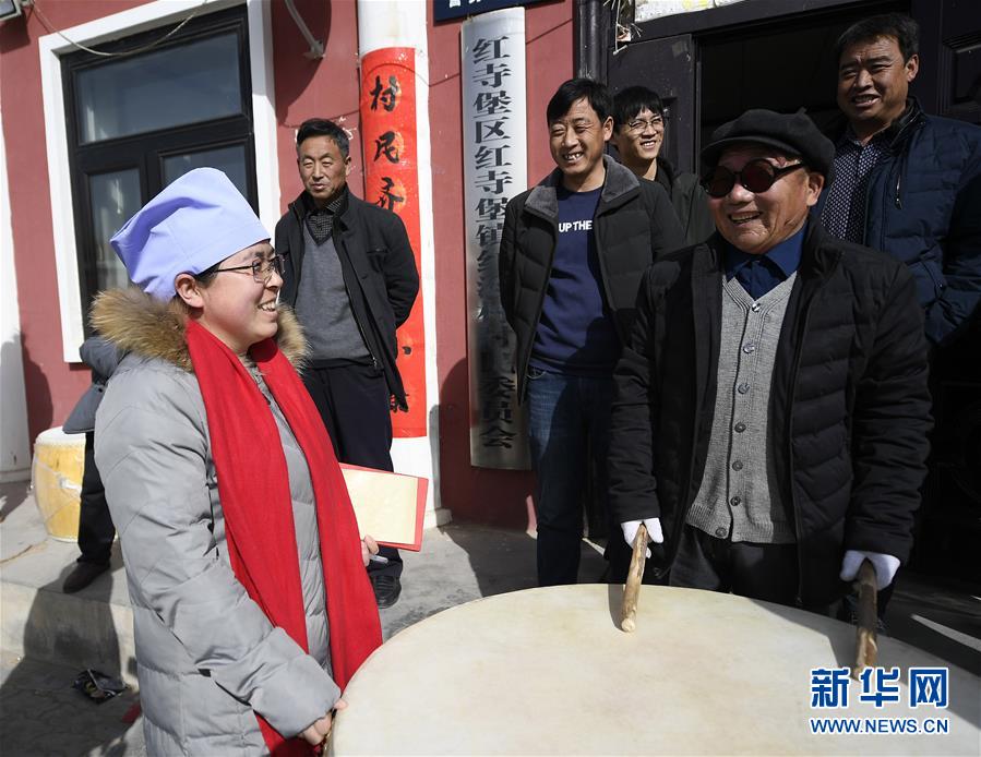 这是马慧娟(前左)在红寺堡镇红海村调研乡村文化建设情况(2月23日摄)。 新华社记者 王鹏 摄