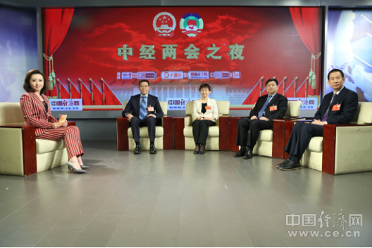 图为“中经两会之夜”特别节目:贵州“玩转”大数据,发展壮大新动能。左起:主持人;全国人大代表,贵州省贵安新区党工委副书记、管委会主任孙登峰;全国人大代表,中国信息通信研究院院长、党委副书记刘多;全国人大代表,贵州华芯集成电路产业投资有限公司董事长、党委书记,贵安新区党工委委员欧阳武;全国人大代表,满帮集团联席总裁,贵阳货车帮CEO、党委书记罗鹏。经济日报-中国经济网记者张鹏/摄