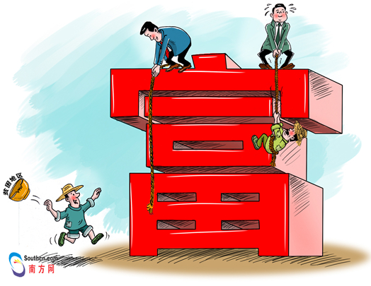 ▲解决发展不平衡问题,全力做好补齐短板大文章。(漫画:小栗子)