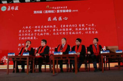 在医学家峰会高峰论坛院士对话环节中,吴以岭院士与葛均波、孙颖浩、宁光、董家鸿等共五位院士齐聚舞台坐而论道,围绕“创新、引领、前行”主题,同与会专家、学者和医务人员分享心得和观点。吴以岭院士以“医病医心”为主题词,从中医整合调治角度出发,指出心理问题也是一种疾病,分析心脑血管、糖尿病和肿瘤等疾病的发生和心理疾病有着密切关系,强调了医病的过程中“医心”的重要性。