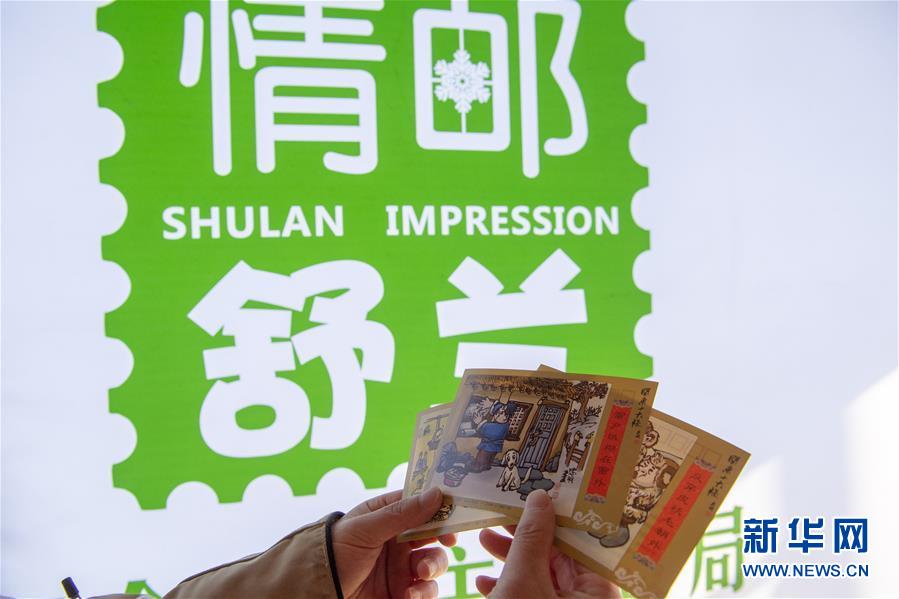 游客在二合雪乡的邮局选购明信片(1月10日摄)。新华社记者张楠摄