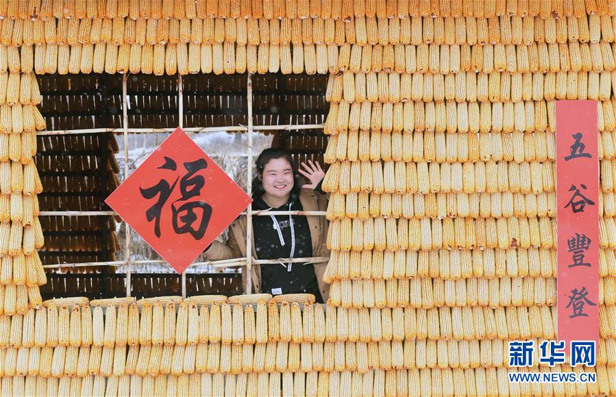 游客在二合雪乡玉米黄金屋景点内拍照留念(1月23日摄)。新华社记者林宏摄