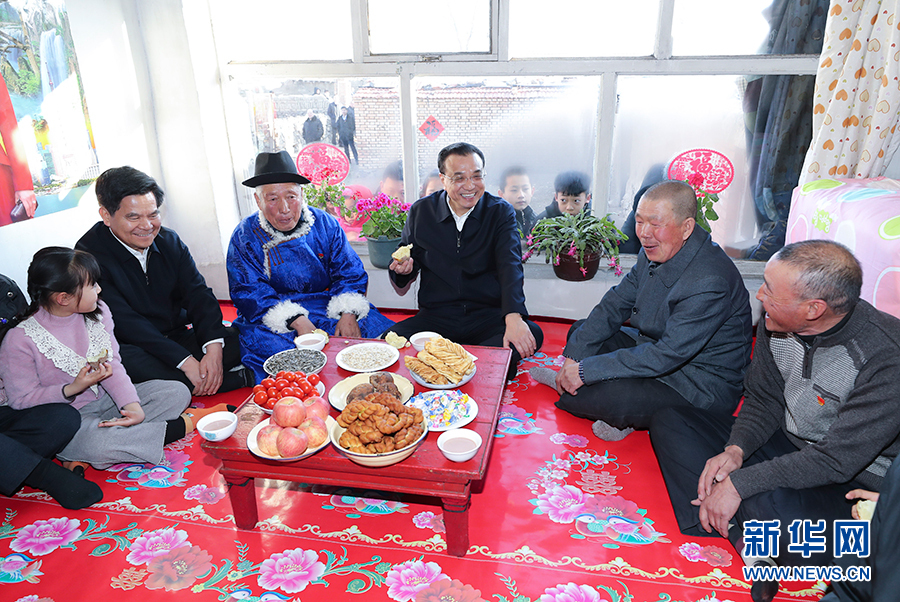 2月1日至2日,中共中央政治局常委、国务院总理李克强在内蒙古自治区乌兰察布市考察。这是2月1日,李克强在察哈尔右翼前旗三岔口乡十二洲村慰问贫困户。 新华社记者 姚大伟 摄