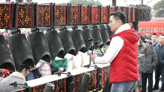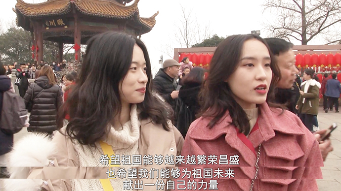 长江边,楼阁下,年味正浓。流转千年的编钟编磬,用雄浑空灵的乐章,将人们的注意力从喧闹的春节氛围中聚拢。一曲《我和我的祖国》把家和国紧紧相系,联结在了一起。从惊喜意外到心潮澎湃,全场近千人在新春佳节向祖国深情表白。