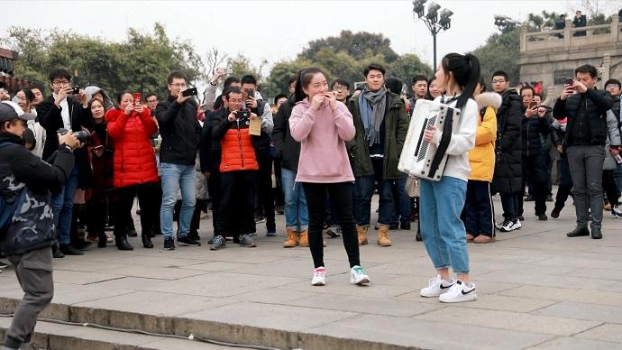 黄鹤楼下,人头攒动,手风琴奏响《我和我的祖国》的乐章。口琴明快的音色,更是将人群紧紧凝聚。创作团队对《我和我的祖国》进行了重新编曲。当编钟编磬遇上口琴手风琴,会有怎样的奇妙碰撞?