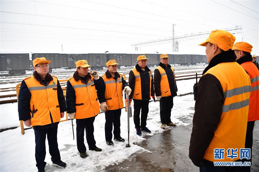 2月14日,在河南省焦作市博爱县月山镇月山车站编组场,工作人员整装待发。 新华社记者 冯大鹏 摄