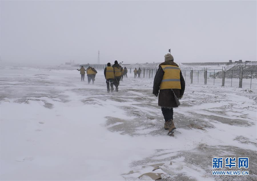 青藏铁路唐古拉线路工人在风雪中前行(1月29日摄)。 新华社记者 旦增尼玛曲珠 摄